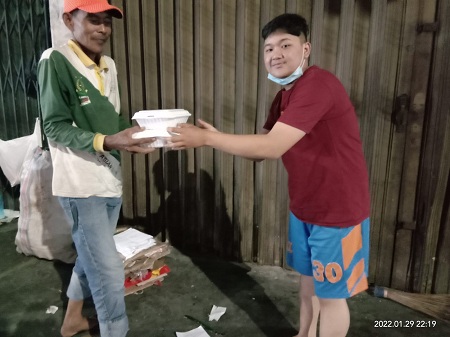 PEKANBARU - Pengurus Persamuan Umat Buddha (PUB) Bodhisattva Mahasthamapratpa membagikan nasi bungkus kepada beberapa orang yang kurang beruntung (tuna wisma) di ruas jalan Tuanku Tambusai, simpang Jalan Durian dan Jalan Riau, Sabtu malam (29/1/22).