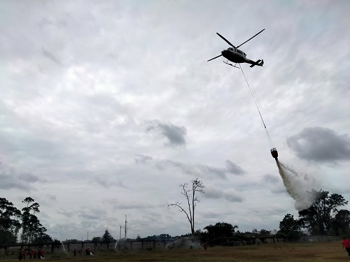 Kesiapsiagaan terlihat dalam simulasi pemadaman Karhutla yang dilaksanakan di kawasan perusahaan, Perawang, Kabupaten Siak, Rabu (15/2/2023). Simulasi melibatkan RPK dan satu unit helikopter water bombing. Kemudian Tim Reaksi Cepat yang anggotanya memang memiliki keahlian khusus.