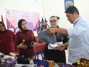 Head of Sales XL Axiata Northern West, Horas Lubis (palING kanan), Group Head XL Axiata West Region, Desy Sari Dewi (kedua dari kanan), dan Kepala Lembaga Pemasyarakatan Perempuan Kelas IIA Medan, Yekti Apriyanti, Amd. IP, S.Pd, M.Si (kedua dari kiri) saat melihat hasil keterampilan warga binaan.(ist)
