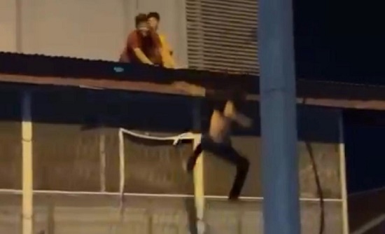 Insiden dramatis ini terekam dalam video berdurasi 52 detik yang viral di media sosial. Dalam rekaman tersebut, terlihat pria itu jatuh dari ketinggian dan langsung dikerumuni warga.