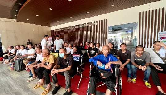 PEKANBARU — Sebanyak 44 Pekerja Migran Indonesia (PMI) bermasalah dideportasi dari Malaysia melalui Pelabuhan Dumai, Provinsi Riau, Sabtu (8/11/2025). Tiga di antaranya menderita penyakit serius.