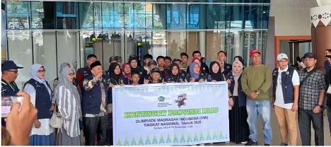 PEKANBARU - Untuk memberi ruang kompetisi sehat dibidang sains dan riset serta memotivasi siswa dalam mengembangkan intelektual dan mencetak duta madrasah yang mampu bersaing ditingkat nasional, Kepala Kantor Wilayah kementerian Agama (Kakemenag) Provinsi Riau, Muliardi, melepas kontingen Olimpiade Madrasah Indonesia (OMI) Riau 2025 ke tingkat nasional, Minggu (9/11/25), di Bandara Sultan Syarif Kasim Riau.