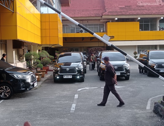 Usai memasukkan barang bukti ke dalam kendaraan, sembilan unit mobil yang digunakan tim penyidik langsung meninggalkan kantor Disdik Riau.