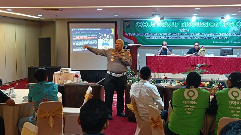 PEKANBARU — Ditlantas Polda Riau melalui Subditkamsel menggelar Focus Group Discussion (FGD) bertajuk “Ojol Peduli Kamtibmas Guna Mewujudkan Situasi Aman dan Kondusif Menjelang Natal dan Tahun Baru (Nataru) 2026.