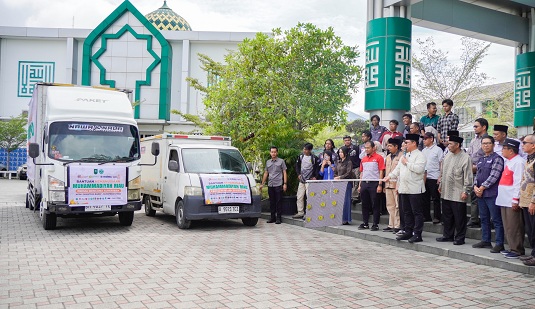 PEKANBARU — Universitas Muhammadiyah Riau (Umri) kembali menunjukkan komitmen kemanusiaannya dengan mengirimkan bantuan logistik dan tim relawan untuk membantu penanggulangan bencana di sejumlah wilayah Sumatera. Pelepasan relawan dan logistik tersebut berlangsung di halaman Gedung Rektorat Kampus Utama Umri, Sabtu (13/12/25).