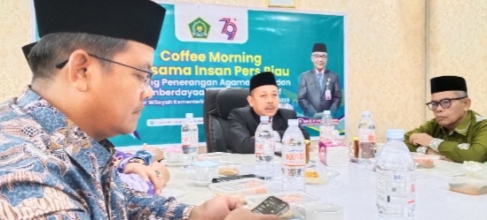 Imbauan tersebut disampaikan dalam Coffee Morning Kanwil Kemenag Riau bersama insan pers, Kamis (18/12/25), di aula Kabag Tata Usaha Kanwil Kemenag Riau.