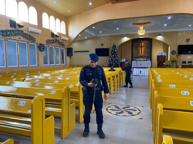 Jelang Misa Natal, Brimob Polda Riau Sterilisasi Sejumlah Gereja di...