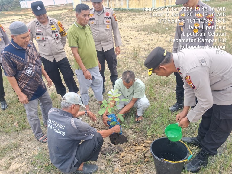 Polsek Kampar Kiri Bersinergi dengan Ninik Mamak Tanam Pohon Hijaukan Lingkungan