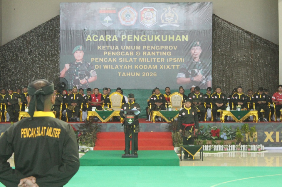 PEKANBARU — Pengurus Pencak Silat Militer (PSM) tingkat Pengurus Provinsi (Pemprov), Pengurus Cabang (Pengcab), dan Ranting di wilayah Kodam XIX/Tuanku Tambusai (XIX/TT) dikukuhkan, Selasa (28/4/2026).